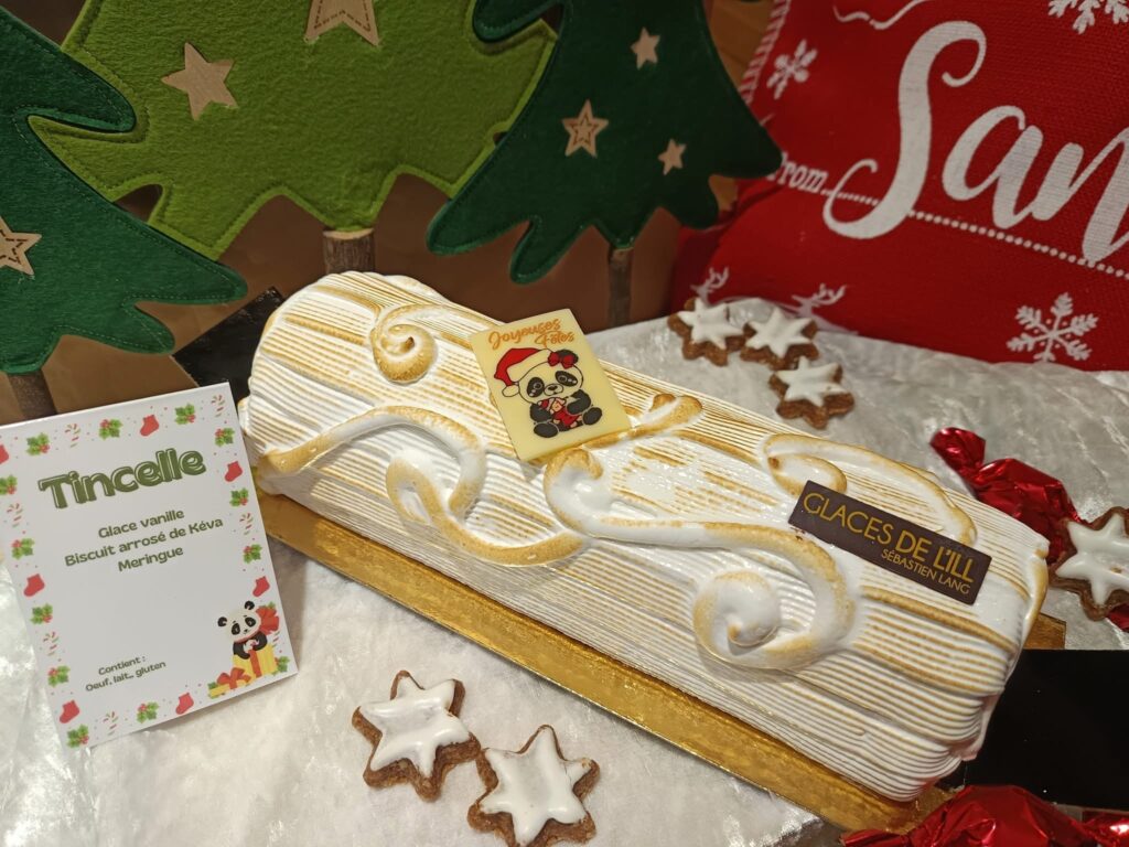 Glace vanille, biscuit arrosé au Keva, recouvert de meringue