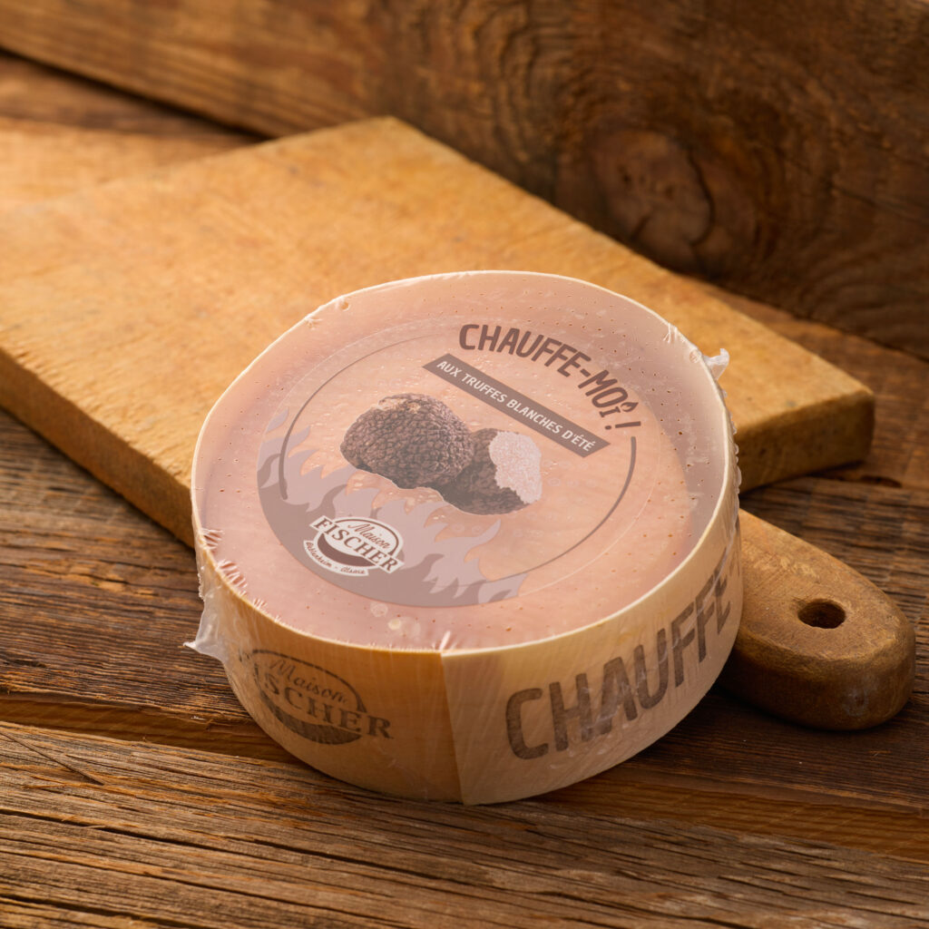 Fromage à fondre, à la truffe d’été, pour les amateurs et les gourmands de produit noble, amusera celui que le dégustera par son nom. Au four à 200°C pendant 20min.
