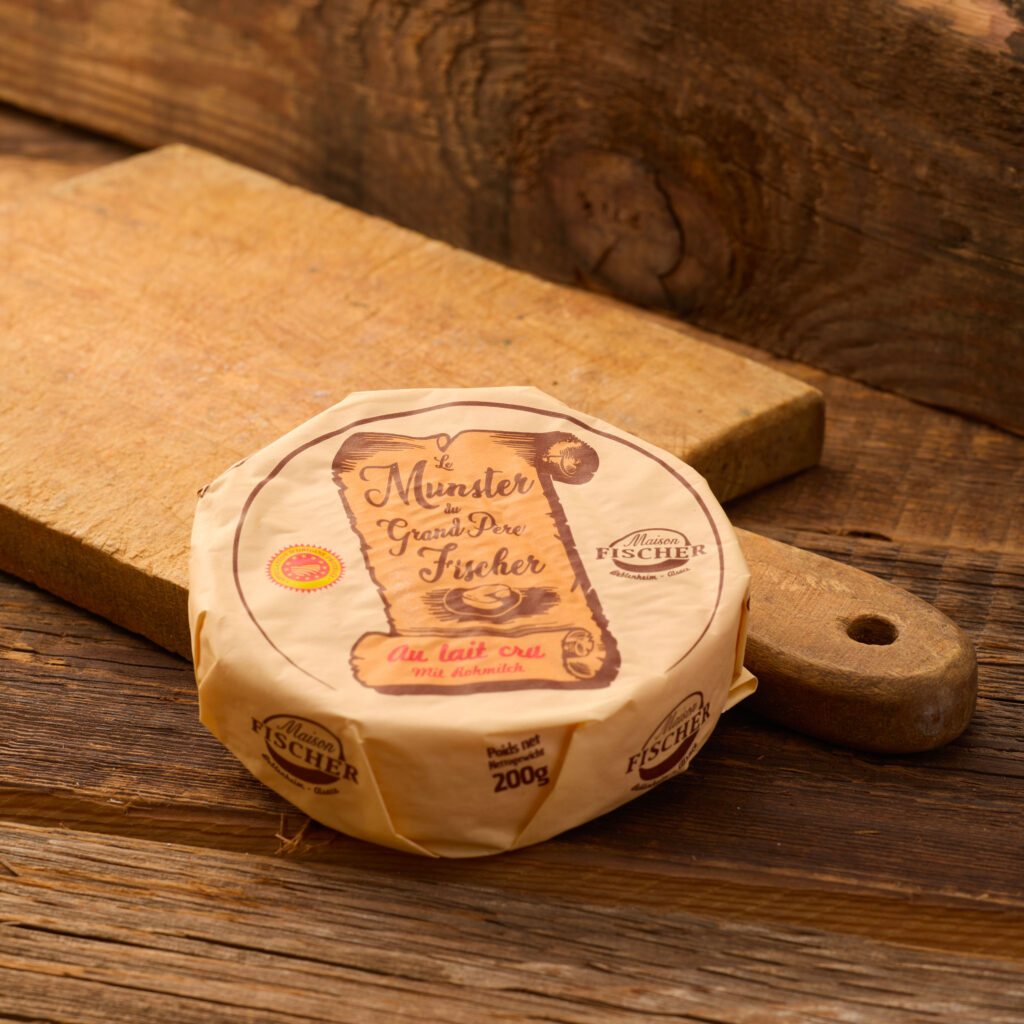 Le Munster est un fromage à pâte molle et à croûte lavée, originaire des Vosges, en Alsace et en Lorraine. Fabriqué à base de lait de vache, il est affiné en cave avec une hygrométrie supérieur a 98%, ce qui lui donne une croûte orangée et une odeur marquée. Sa pâte est souple, fondante et son goût puissant, mais équilibré, avec des arômes de sous-bois. Le Munster bénéficie d’une AOP (Appellation d’Origine Protégée) et se déguste souvent avec des pommes de terre ou du cumin.